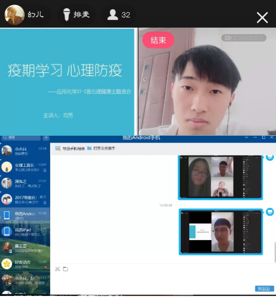 线上心理主题班会大赛。4月28日至5月16日,学院面向全院所有班级举办了线上心理主题班会大赛。各班围绕“心理防‘疫’,呵护健康”主题,在网络资源平台上开展心理主题班会,进行心理健康教育、生命教育、安全教育等。学院根据各班所提交的班会报名表、设计方案、开展情况与总结、多媒体图像资料等,评选出应化17-2班等班级一等奖2个,应化18-1班等班级二等奖3个,弹药18-6班等班级三等奖4个。