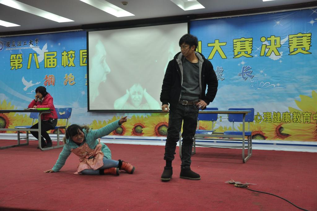 12月22日下午校本部九楼报告厅座无虚席,掌声雷动,校第八届大学生心理情景剧大赛决赛在这里隆重举行。贴近校园生活的剧情、幽默诙谐的表演、跌宕起伏的矛盾冲突、生动感人的故事情节赢得了现场观众的阵阵掌声与喝彩声。入围决赛的6个心理情景剧主题突出,内容丰富,涵盖了大学校园生活中常见的亲情、友情、恋情、学习、求职、人生等方方面面的困惑与思索,引人深思,发人深省。副校长叶醒狮与500多位师生一起观看了比赛,并为获奖个人和集体颁奖。