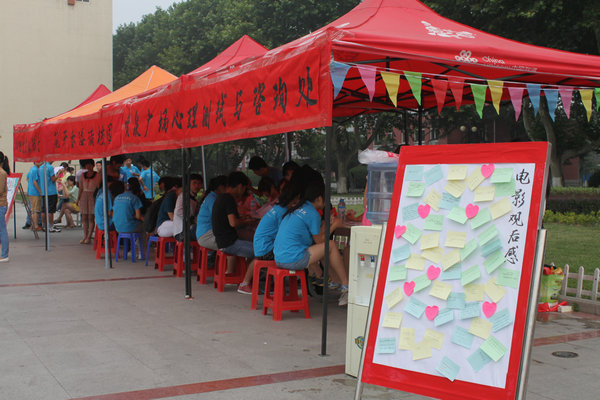 通过精选涉及心理学的经典影片在校内展播,并设置“精辟感言”板。在影院现场向同学们发放精美的纸片,让大家写上自己观看影片后最大的触动和感想。