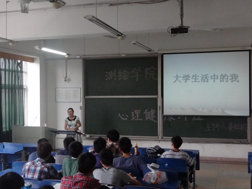 6月27日下午,测绘学院在北区1205教室开展心理健康讲座。讲座由姜松梅老师主讲,测绘学院13级学生到场听讲。