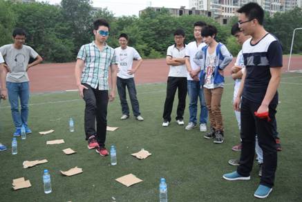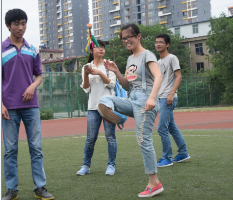 5月13日中午,学院13级各班级参加了大学生素质拓展活动。各班级代表队10人一组,共7个小组参加了活动。活动分为3部分:四人捆腿跑、海底摸石、踢毽子。