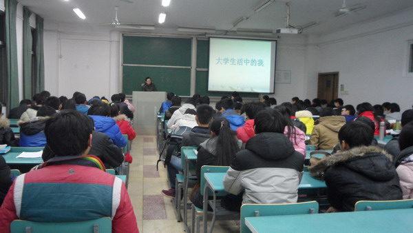 12月26日晚在北实206教室,姜松梅老师应邀为计算机科学与工程学院做了一场题为《大学生活中的我》心理健康讲座。讲座由学院2013级辅导员吕金梅老师主持,2013级各班班委及各宿舍负责人等130余人聆听了讲座。
