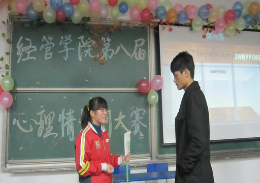 学院辅导员和班主任老师都发现有部分同学被一些心理问题所困扰着,学院专门举办了“心理情景剧”展演,同学们就大学入学以来一些突出的心理问题(贫困生自卑心理,考试惧怕心理,贪图享乐心理等)用舞台展演的方式进行了真实的表达,弘扬了同学间积极向上、互帮互助的主旋律,同学们在参与和观看中受到了感染,收获了感动。