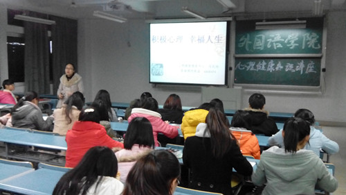 11月28日晚7时,外国语学院邀请校心理健康中心马庆玲老师在医教401教室为大一新生作心理健康知识讲座。