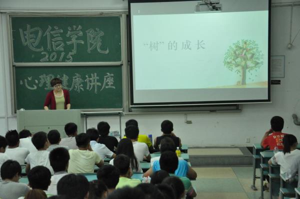 为帮助同学们缓解压力,以积极平和的心态迎接即将到来的期末考试,6月14日晚,电气与信息工程学院邀请校心理健康中心王冰洁老师在北实405作了一场题为《树的成长》心理健康讲座。讲座由院党委副书记徐关怀主持。2013级、2014级学生干部代表近150人聆听了本次讲座。