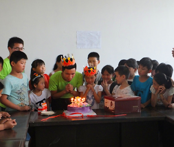 下午5点,在双塔小学的教师休息室里,志愿者们为秦学洁点起了生日蜡烛,和其他小朋友们一起唱起了生日歌,在一片祝福声中秦学洁小朋友许下了幸福的愿望,吹灭了蜡烛。志愿者们送上了写满生日祝福的千纸,希望他能放飞自己的梦想。当被问道许的生日愿望时,她用稚嫩却坚定的口气说:“我希望以后也能像各位哥哥姐姐一样,好好学习,考上大学!”