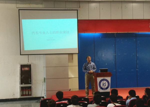 4月13日下午,美国通用汽车公司发动机分析部高级分析师刘传李博士在校北区图书馆报告厅,作了题为《车辆专业人才的职业规划》的报告。报告会由机械工程学院车辆工程系主任陈清华主持。学院部分教师、车辆专业大一、大二、大三本科生200多人参加。