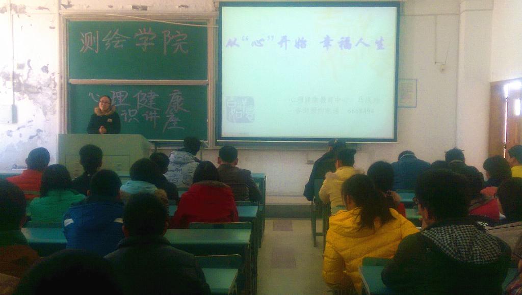 为了丰富同学们的心理健康知识,12月16日上午,测绘学院邀请了校心理健康教育中心马庆玲老师在北校区实验楼501教室举办了主题为“从‘心’开始,幸福人生”的积极心理学讲座。学院2015级测绘专业131名同学参加了此次讲座。