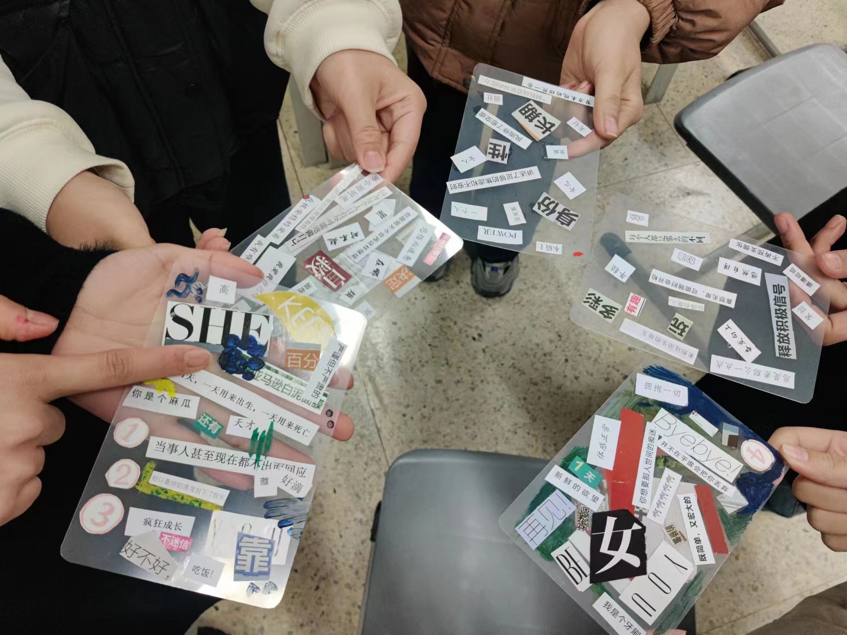 三月冰雪消融带来了温暖也迎来了第114个国际妇女节,心理中心开展了三八女性团体特期---拼贴艺术疗愈。在工作坊中,参与者拼贴了独属于自己的艺术作品,通过选取的不同文字元素,反映着内在的体验和情感需求。拼贴作品分享中,成员们分享了自己的作品,通过分享和讨论,不但将压抑的情绪得以释放,而且与他人建立起了情感链接,成员间互相鼓励和倾听,获得心理支持。活动的最后成员们共同留下了一幅作品作为纪念。